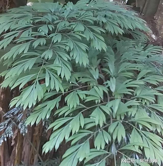 这两棵树的叶片长得像羽毛,形状非常大,粗壮的黑褐色树干,盘大哥觉得它们长得太好看了,没有多想就挖回家种到院子里观赏。