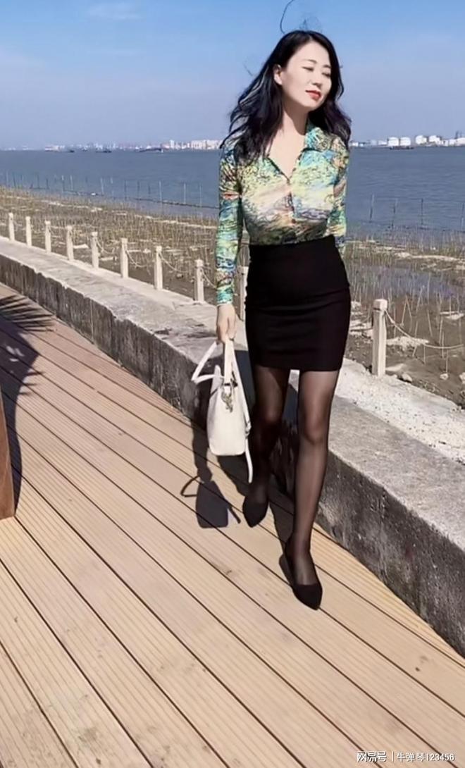解开第一颗扣子形成V领这个小技巧太重要了,V领能拉长脖子线条,让脸看起来更小巧,还能若隐若现露出锁骨,特别显瘦,微胖女生穿V领比圆领方领都友好多了。下身可以搭配丝袜和高跟鞋,建议选哑光黑色的,上下不同材质既有层次感又很和谐。